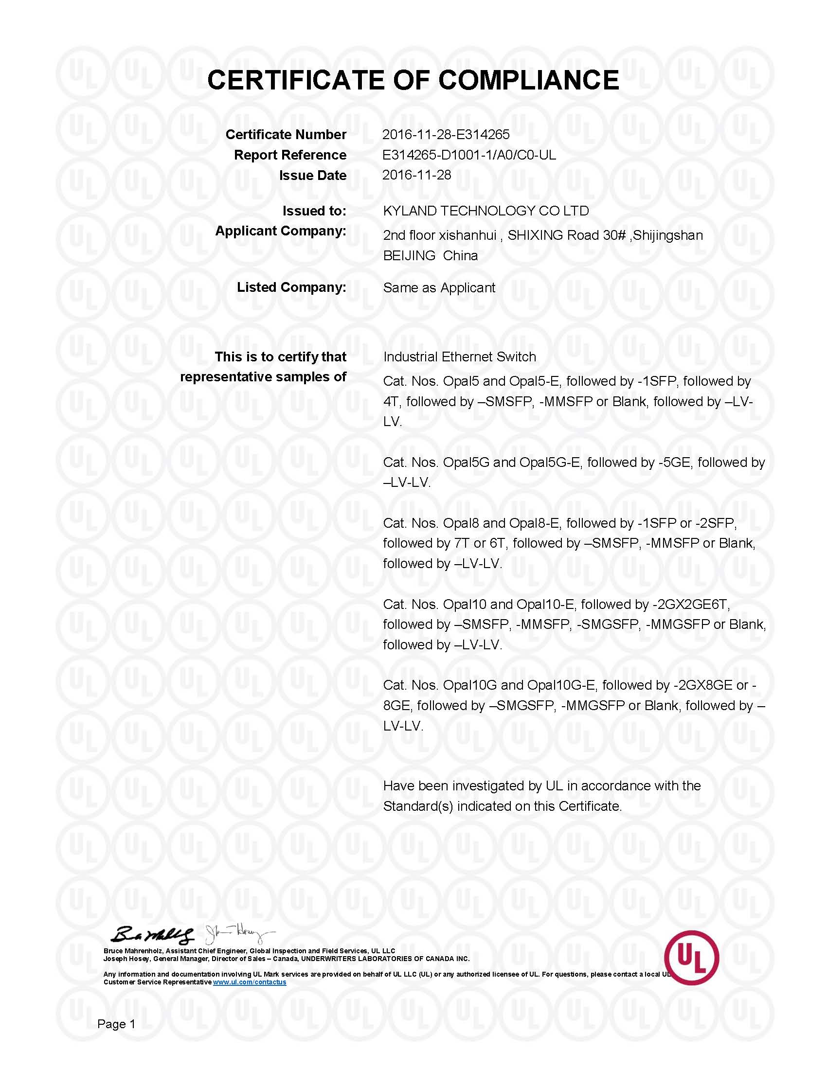UL61010 Certification_E314265_OPAL5-SFP,OPAL5G,OPAL8-SFP,OPAL10,OPAL10G_24VDC(24VAC)